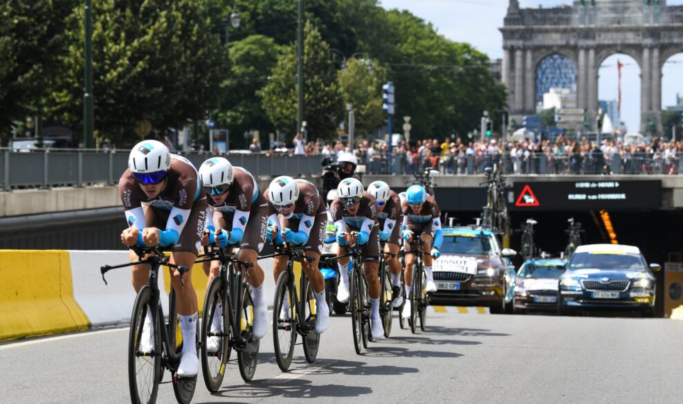 « On va perdre du temps, on le sait. » Julien Jurdie, directeur sportif de l’équipe AG2R La Mondiale, était assez pessimiste avant le chrono par équipes de dimanche. L’objectif était de ne pas perdre plus d’une minute sur la formation Ineos et ses deux leaders, Geraint Thomas et Egan Bernal. A l’arrivée à Bruxelles, 59 secondes séparaient les deux équipes. Mission accomplie, sur le papier, mais Romain Bardet est désormais le dernier des favoris au classement général. Surtout, en 2015 et en 2018, où des chronos par équipes étaient aussi au programme, il n’a jamais repris une minute en montagne aux anciens Sky. Qu’importe, Jurdie n’imagine pas rivaliser avec les grosses écuries dans l’exercice. « La différence, elle se fait avec les hommes. On n’a pas de grand spécialiste du chrono, donc on ne va pas y passer des journées entières pour espérer gagner trois secondes sur 25 kilomètres. »