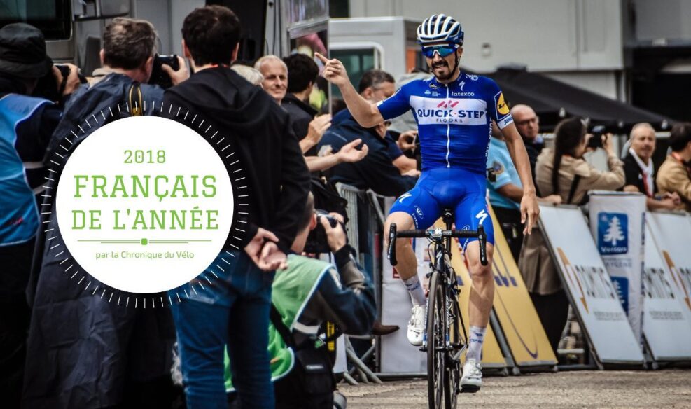 Si le contingent français n’a pas manqué de talents, ni d’exploits au cours de la saison, Julian Alaphilippe reste une évidence quand il s’agit de désigner le meilleur coureur tricolore de l’année. Le puncheur de l’équipe Quick-Step Floors, auteur d’un exercice 2018 grandiose, succède à Romain Bardet au palmarès de la Chronique du Vélo.