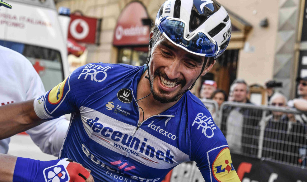 Les Transalpins retiendront qu'il s'agit du premier coureur Quick-Step à s'imposer chez eux depuis Filippo Pozzato en 2006, une éternité pour une formation qui marche sur l'eau. Mais dans l'Hexagone, on jubile de voir cette génération dorée briller sur tous les terrains. Parce que pendant vingt ans, du sacre de Laurent Jalabert à celui d'Arnaud Démare, les Tricolores ne mettaient pas un pied devant l'autre sur la « Primavera », et que désormais, ils viennent de s'adjuger deux des quatre dernières éditions. Peut-être parce que plus que jamais, cela paraît bien parti pour se prolonger, tant Alaphilippe hérite déjà d'une pancarte grosse comme une maison pour Liège-Bastogne-Liège en avril, et avant ça l'Amstel et la Flèche. Inutile de prédire, sans chauvinisme, que l'atmosphère sonore autour du bus de son équipe sur les routes du prochain Tour de France sera retentissante. Tout s'offre à lui, et Patrick Lefevere le sait bien. L'image de ses quatre coéquipiers main dans la main au moment de franchir la ligne une minute après l'illustre à merveille. Le patron, c'est bien Julian.