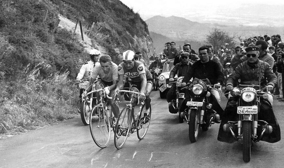 Il est une image qui restera à jamais. Un coude-à-coude légendaire dans le Puy-de-Dôme. Jacques Anquetil sur la gauche de la photo, Raymond Poulidor sur la droite. Les deux en déséquilibre. Comme un symbole, l’image la plus marquante de la carrière de « Poupou » est une photo où il est accompagné de son plus grand rival. Quelques kilomètres plus loin, le voilà seul, en route vers un maillot jaune qu’il loupera ce jour-là pour quatorze petites secondes. Presque une uchronie, tant cette fin d’étape a glissé dans l’oubli. Comme si l’affrontement entre les deux Français, plus bas dans la pente, avait sonné la fin de cette histoire et de ce Tour 1964 que Poulidor ne remportera pas. C’est le symbole, finalement, de la carrière de Raymond Poulidor, davantage marquée par ses échecs que par ses succès, pourtant pas anodins. Le Tour d’Espagne, Milan-Sanremo, le Dauphiné, le championnat de France, Paris-Nice, le Grand Prix des Nations. Le Limousin a gagné tout ça. Mais peu importe, il sera pour toujours l’éternel second.