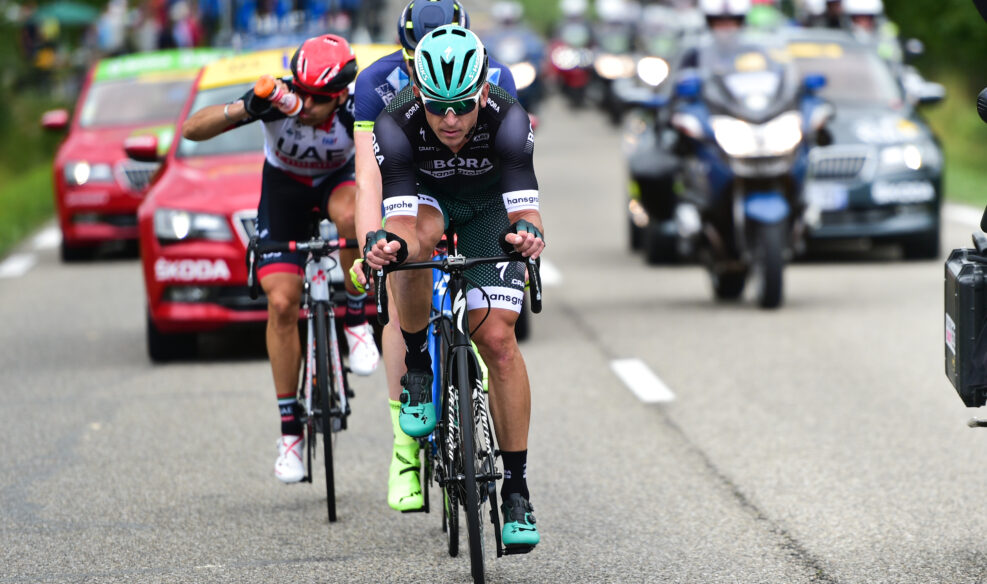 Derrière, l’imperturbable machine à sprint massif s’était enclenchée un peu plus tôt. Il fallait garder les fuyards sous contrôle et comme un chat qui s’amuse avec sa souris, accélérer au moment convenu. Ne jamais laisser trop d’avance et mettre fin aux espoirs faussement cultivés pendant la longue cavalcade vers Pau. Une potentielle victoire d’étape est trop importante pour une équipe armée de grosses cuisses. Aujourd’hui néanmoins, le chat a été surpris. Le contre de Bodnar n’était pas dans le scénario. Alors, quand le coureur de la Bora augmente son avance à moins de vingt kilomètres, le peloton panique. Bodnar a changé la donne. L’équipe Lotto d’André Greipel prend plus peur encore que les autres. Son Gorille de Rostock n’a toujours pas gagné et l’équipe est en train de passer à côté de sa Grande Boucle. L’intérêt est trop grand pour laisser la Quick-Step de l’invincible Marcel Kittel mener la danse. Comme disait Degenkolb hier, ou Jean-Claude Dus à la fin des années 1970, « sur un malentendu… »