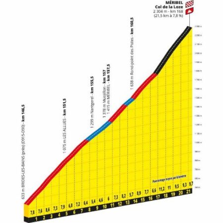 Goudronnée à l’été 2019, la route du col de la Loze a été empruntée pour la première fois en compétition sur le Tour de l’Avenir en août dernier. Le vainqueur du jour, le Norvégien Tobias Foss, s’était à l’époque livré à DirectVélo : « Cette nouvelle montée finale est la plus dure des Alpes ! En tout cas, c’est la plus dure de celles que j’ai eu à grimper. » Les six derniers kilomètres de l’ascension, une succession de plats et de murs dont certains passages frôlent les 20 %, favoriseront les profils explosifs.