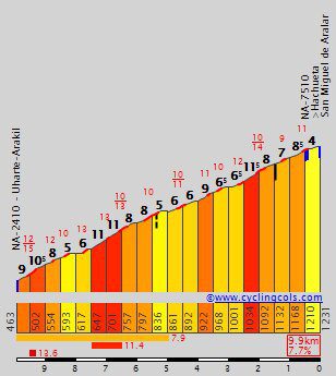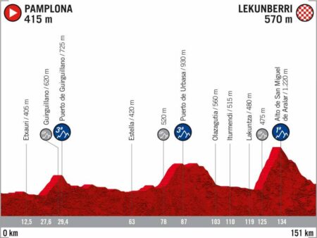 Un col de première catégorie suivi d’une descende rapide : un scénario inédit sur les routes de ce Tour d’Europe que l’on retrouvera d’ailleurs dès le lendemain. En 2014, l’ascension de l’Alto de San Miguel de Aralar avait sacrée Fabio Aru. L’Italien y avait devancé Alejandro Valverde de six petites secondes.