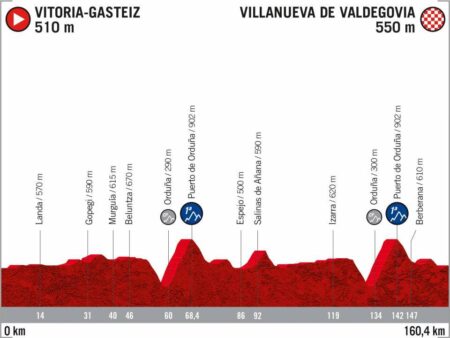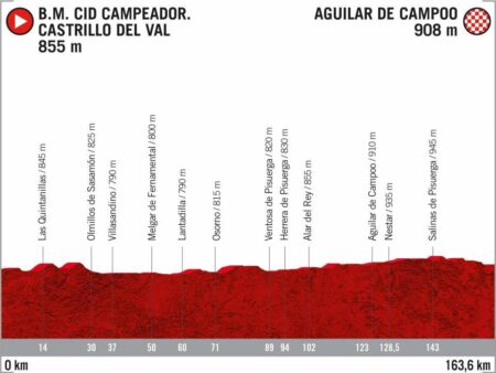 Une véritable étape de transition avant de rejoindre la côte Cantabrique et les Asturies. 164 kilomètres totalement plats pour un final qui devrait convenir aux plus grosses cuisses du peloton.