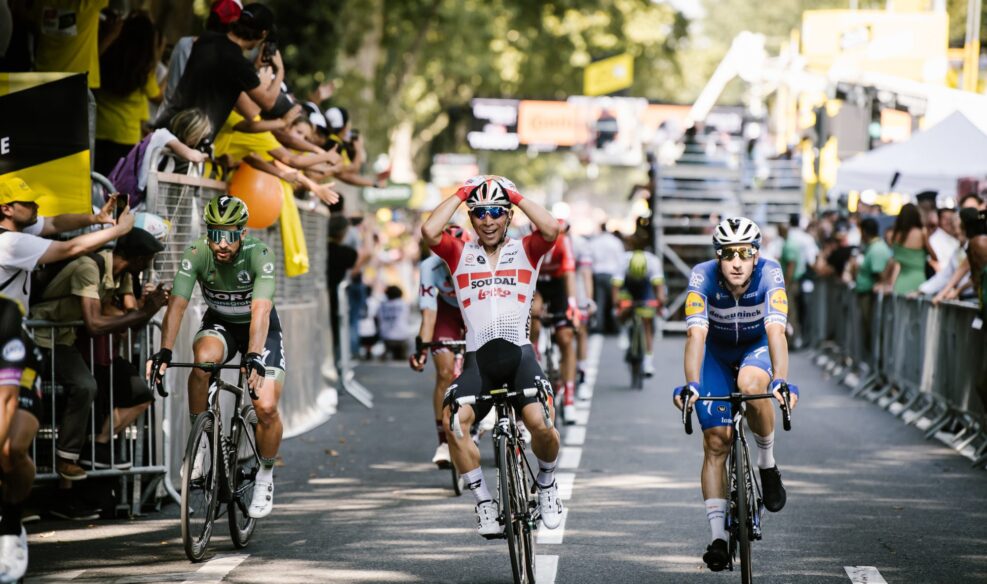 A Chalon-sur-Saône, vendredi dernier, Dylan Groenewegen avait eu chaud. Il avait levé les bras mais avait senti le souffle de Caleb Ewan, qui avait finalement échoué à un boyau seulement, dans les derniers mètres. « Avec Caleb Ewan, c’est toujours très serré », lançait alors le Néerlandais avec le soruire. Il était soulagé, pour ce coup-ci, ça avait tourné de son côté. Mais très serré, ce le fut encore ce mercredi, à Toulouse. Les deux hommes ont passé la ligne épaule contre épaule, sans savoir réellement qui avait pris le dessus sur l’autre. Finalement, c’était l’Australien, qui tient son premier succès sur le Tour de France. Toujours placé mais jamais vainqueur, troisième à Bruxelles, à Nancy, à Albi et deuxième à Chalon-sur-Saône, le sprinteur de Lotto-Soudal n’avait pour le moment pas réussi à dominer les autres grands sprinteurs, qui se sont, eux, déjà imposés.