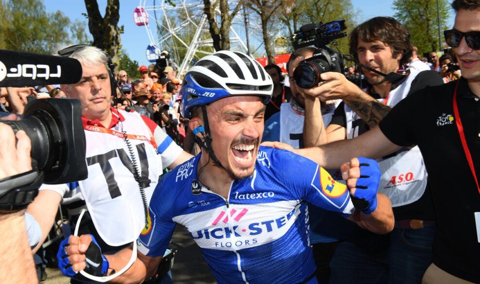Ne lui en voulez pas de ne pas avoir levé les bras pour célébrer sa victoire. Lorsque Julian Alaphilippe a franchi la ligne, il pensait être deuxième, persuadé que Vincenzo Nibali était encore échappé. Mais il n’y avait en réalité plus personne devant lui et le Français l’a compris quelques secondes plus tard : il tient bel et bien sa première classique.