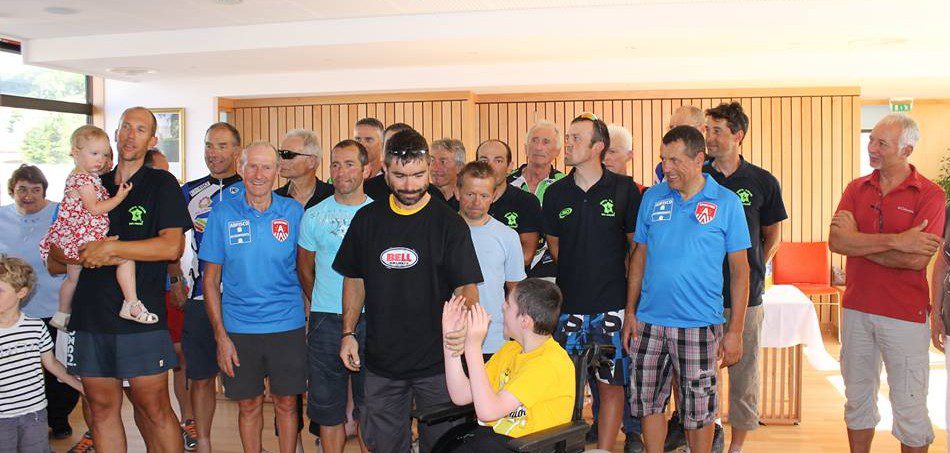 Concernant les Choumpitas, la plupart viennent de la région, mais deux belges les ont accompagné dans leurs pérégrinations, ainsi que trois personnes de Paris, Dijon et Montpellier. De 33 à 66 ans, ces cyclotouristes ont du se repérer grâce au roadbook officiel : « On avait un roadbook a disposition, mais la route n’est pas tracé alors on a essayé de se tromper le moins possible » plaisante le président. Ceux qui ont passés en moyenne onze heures par jour sur le vélo forment aussi une association, et quatre membres ont participé au périple. « On est avant tout une bande de copains. On a fondé l’association pour faire du vélo comme les pros, mais en amateur. L’association se lance parfois des défis et cette année le défi était de taille avec le Tour » raconte Frédéric Tscherter. L’association s’est battu pour Killian, un jeune enfant handicapé : « On a profité de notre exposition pour parfaire un projet humanitaire comme celui-là. On a reversé un euro par kilomètre parcouru, soit 3 404€ » termine le président. Les Choumpitas peuvent donc se féliciter de leur défi personnel, mais apportent aussi leur soutien à Killian, qui va pouvoir bénéficier de meilleurs soins et équipements grâce à ce Tour de France avant l’heure.