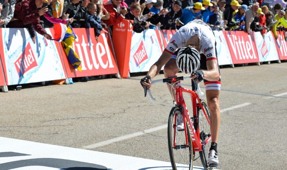 Il est 16h56. Alors qu’il reste à peine plus d’un kilomètre à parcourir sur les pentes du Mont Ventoux en direction du Chalet Reynard, Richie Porte, Christopher Froome et Bauke Mollema s’apprêtent à faire la belle opération du jour. Sortis à moins de cinq kilomètres de l’arrivée, ils possèdent une vingtaine de secondes d’avance sur le reste des favoris. Alors que l’ancien Sky mène le groupe, une moto freine brusquement devant lui et l’homme de Tasmanie ne peut l’éviter. Debout sur les freins, il prend la caméra en plein visage et enchaîne avec un soleil par-dessus son vélo. Derrière lui, Froome et Mollema subissent le même sort et se retrouvent au sol. L’Australien et l’Anglais s’en sortent avec quelques éraflures mais leur matériel est en état de marche. Le Néerlandais, quant à lui, ne peut pas repartir. Son vélo est brisé, son dérailleur a été écrasé par une deuxième moto, derrière lui. Le groupe Quintana-Bardet passe le leader de la Trek avec difficulté tant le monde sur la route est impressionnant. Entre les véhicules arrêtés et la foule record amassée en Provence pour ce jour de fête nationale, personne ne comprend ce qui se passe et les caméras ont du mal à filmer correctement. Mais on comprend vite que quelque chose d’inhabituel s’est produit.