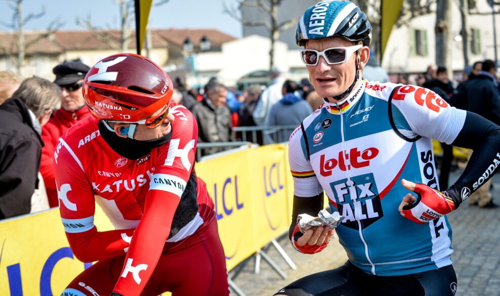 La victoire de démare hier me rend plus triste qu’autre chose. Je pense qu’il est pas loin du niveau en sprint et en force brute pour passer les pavés d’un Degenkolb mais vu qu’il ne sait toujours pas se placer il ne gagne pas. Hier son équipe l’a déposé à l’endroit parfait à 1km juste avant que les 3 autres attaquent il a plus eu qu’à suivre. A Doha l’équipe de France (surtout si Bouhanni et Démare font leur sprint chacun de leur côté) ne pourra pas contrôler comme la Fdj le fait sur des courses continentales. Démare devra donc frotter ce qui réduit ses chances à presque 0.
