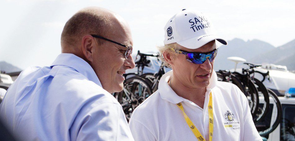 Malheureusement pour lui, le déroulement de la Grande Boucle lui ôte rapidement ses espoirs. Le leader espagnol de la formation danoise tente, mais ne gagne pas ce centième Tour si symbolique. Une énorme déception pour Tinkov, qui n'hésite pas à fustiger le Madrilène sur Twitter : « La performance de Contador n'était pas bonne. Il doit changer beaucoup de choses dans sa préparation et être plus pro. Est-ce qu'il le fera ? C'est la question. Son salaire ne colle pas avec sa performance. Trop riche, et pas assez affamé, c'est mon avis, et j'ai le droit de le donner. Il doit travailler plus dur. » Quelques jours plus tard, la fin du partenariat entre Bjarne Riis et Oleg Tinkov est annoncée. Le Russe décide de partir seul de son côté, et de monter sa propre équipe, qu'il entend bien faire régner sur le cyclisme mondial.