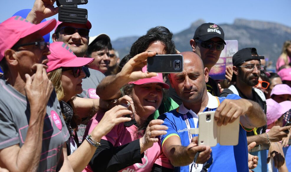 Le moment de la signature, avant chaque étape, est ainsi symbolique. Sur le Tour de France, j’ai l’habitude d’entendre des applaudissements pour tous les coureurs, un peu plus pour les Français, mais rien d’impressionnant. Sur le Giro, avant même que le speaker ait prononcé le nom du coureur, le public s’exclame, crie, chante, tend des bras. Ils commencent tous à effectuer une ola et hurlent « VIN-CEN-ZO ! » lorsque Nibali apparaît enfin. Pas de quoi surprendre la presse italienne. Mais moi, j’étais épatée de voir autant d’amour pour un coureur.