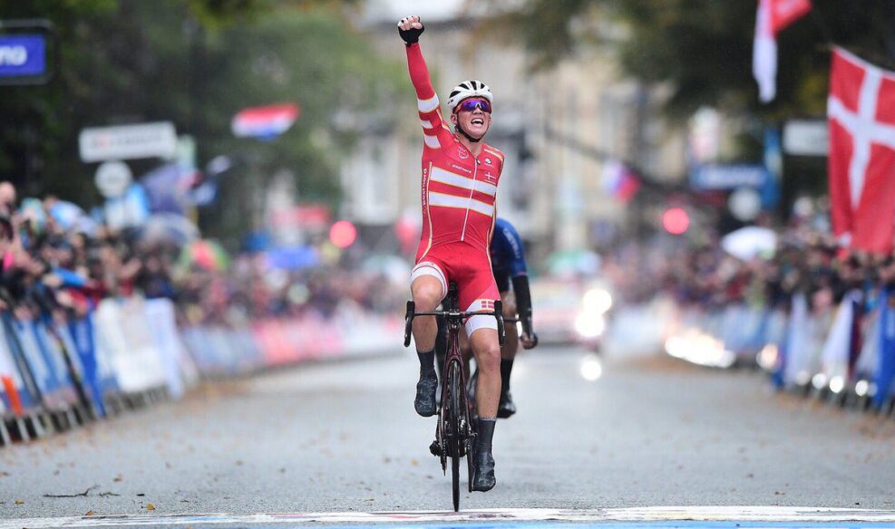Pour le Scandinave de 23 ans, les dimanches se suivent et se ressemblent. Dans l’ombre médiatique à la suite de la Vuelta, des classiques canadiennes, du Tour de Grande-Bretagne ou encore des classiques italiennes, le Grand Prix d’Isbergues – rendez-vous habituel de la Coupe de France – consacrait l’ex-champion du Danemark sur route, au prix d’un sacré numéro sous la pluie, déjà. L’homme du Nord, qui semble décidément très à l’aise sous ces conditions, avait régalé dans son couloir et largué les sprinteurs, prenant date pour les championnats du Monde où il n’était à l’origine qu’un électron libre, au sein d’une sélection nationale sans leader attitré. Certes, il y avait bien Michael Valgren, très bon sixième en collant aux basques d’un Peter Sagan sans doute frustré de ne pas avoir pu s’exprimer au moment où la décision s’est effectuée, mais de Kasper Asgreen à Magnus Cort Nielsen en passant par l’incontournable Jakob Fuglsang, tous avaient leur mot à dire sur une course d’un jour sélective de 260 kilomètres.