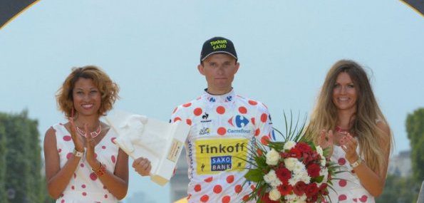 Rafal Majka par deux fois à Risoul et en haut du Pla d’Adet, Michael Rogers à Bagnères-de-Luchon, et cerise sur le gâteau, ce maillot à pois de meilleur grimpeur sur le podium protocolaire des Champs-Elysées pour le jeune polonais. Hormis Pierre Rolland, c’est l’un des rares à avoir effectué le doublé Giro-Tour cette année et à en tirer pareille satisfaction. Sixième à Trieste, c’est la confirmation d’un pur grimpeur n’hésitant pas à faire le spectacle lorsque la pression est un peu moins forte. D’autant plus qu’à priori, on ne l’attendait pas à ce niveau. On le pensait débarqué en urgence par l’équipe Tinkoff suite aux révélations concernant le passeport biologique de Roman Kreuziger afin de compléter l’effectif, et sa première semaine « très tranquille » selon son directeur sportif ne semblait que confirmer les insistantes rumeurs selon lesquelles le principal intéressé n’était pas prévu pour la Grande Boucle. Info ou intox ? Philippe Mauduit semble avoir la réponse : « Je ne sais pas d’où vient cette rumeur, Rafal faisait partie des plans de l’équipe, de cette présélection de quatorze coureurs envisagée dès le mois de novembre. Je ne sais pas pourquoi tous les journaux nous posent cette question, c’est un détail, et cela le fait juste sourire un peu. On l’avait pas mis dans les neuf, car on souhaitait voir comment il allait récupérer du Giro. Après huit jours de vacances, il a repris l’entraînement progressivement, car on avait besoin de lui pour les Alpes et les Pyrénées, il devait s’économiser. »