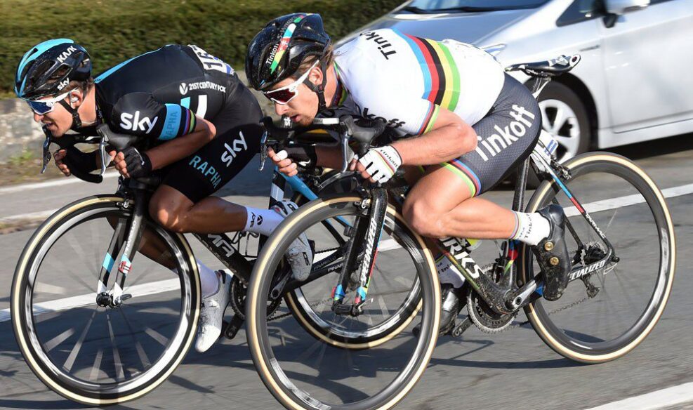 En franchissant la ligne de Milan-Sanremo, Peter Sagan, en perte d’équilibre, est venu s’appuyer sur le vainqueur Michal Kwiatkowski. Jamais sur un vélo le Slovaque n’avait été aussi proche du Polonais. Pourtant, leur rivalité dure depuis plus de 10 ans. Chez les juniors, ils étaient déjà les deux épouvantails du peloton. Aujourd’hui, ils sont les deux derniers champions du monde.