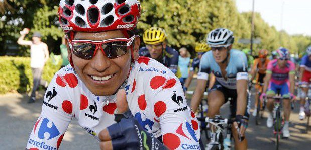 On l’attendait en équipier de luxe d’Alejandro Valverde, pour dynamiter la course et aider son leader à monter sur le podium. Clairement, le Murcian en avait les moyens, mais l’étape de Saint-Amand-Montrond a ruiné ses espoirs, et le leadership est revenu au jeune colombien de 23 ans. On attendait alors de voir comment il allait supporter une pression nouvelle ; on n’a pas été déçus. Restant lui-même, n’hésitant pas à attaquer sur les pentes du Ventoux, il mit tout en œuvre pour lâcher Froome lorsque c’était possible. Il réussit son coup une première fois à l’Alpe d’Huez, mais fut privé de la victoire d’étape par les échappées. Deux jours plus tard, au Semnoz, il fut donc sans pitié. L’étape dans la poche, il termine son premier Tour de France à la deuxième place du général, emportant dans son élan le maillot à pois et le blanc. Prodigieux.