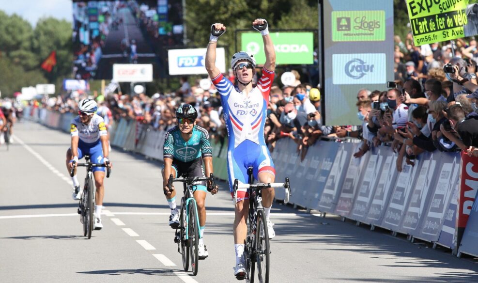 Julian Alaphilippe a tout tenté mais il n’y avait rien à faire. Par deux fois, dans les cinq derniers kilomètres, il a écrasé les pédales, fait frétiller ses jambes jusqu’à dodeliner sur son vélo, tout ça avec un seul objectif, faire en sorte qu’Arnaud Démare ne soit plus dans sa roue. Constamment retourné pour jauger l’écart avec le déjà double champion de France, Alaphilippe a dû y croire, au moins pendant un instant. Mais le sprinteur de Groupama-FDJ était trop fort. On n’ira pas jusqu’à dire qu’il n’a eu besoin de personne, parce que son équipe a maîtrisé la course quasiment toute la journée et que Bryan Coquard lui a donné un relais bienvenu dans le final, mais le Picard était une jambe au-dessus des autres, ce dimanche. Il n’aurait sans doute pas été champion de France à Plumelec, sur le parcours initial, mais rien ne disait non plus qu’il l’emporterait à Grand-Champ, sur un tracé qui n’était pas tout à fait destiné aux sprinteurs.