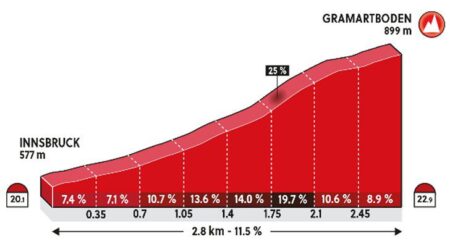 En parlant de monts belges, le Höll est souvent comparé à la célèbre montée du Mur de Huy qui décide de la Flèche Wallonne, ou encore à la côte de La Redoute sur Liège-Bastogne-Liège. Mais la version autrichienne est plus longue et la pente se raidit de plus en plus à mesure qu’on se rapproche de Gramartboden, le sommet. Quiconque réussirait à creuser un écart peut plonger dans la descente sinueuse jusqu’au centre d’Innsbruck et remporter le titre mondial.